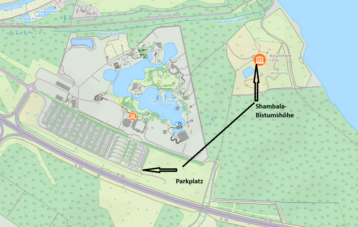 Mit dem Auto bis zu BELANTIS / Cospudener See oder Elsterstausee an der A38. Von BELANTIS ca. 1 km bis zur Bistumshöhe.